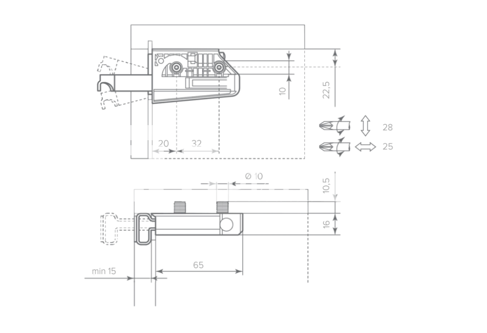 Использование мебельных навесов HOLD даёт возможность регулировать модули после навешивания – диапазон регулировки по высоте 28 мм, по глубине 25 мм. Дополнительно может комплектоваться декоративной крышкой, для гармоничного дизайна вашей мебели.