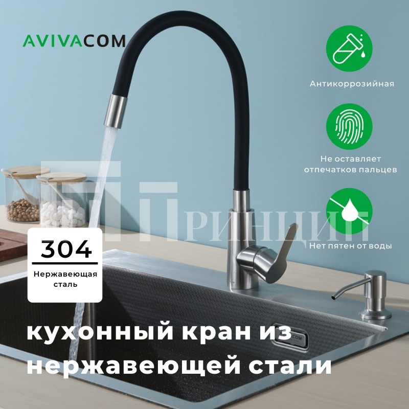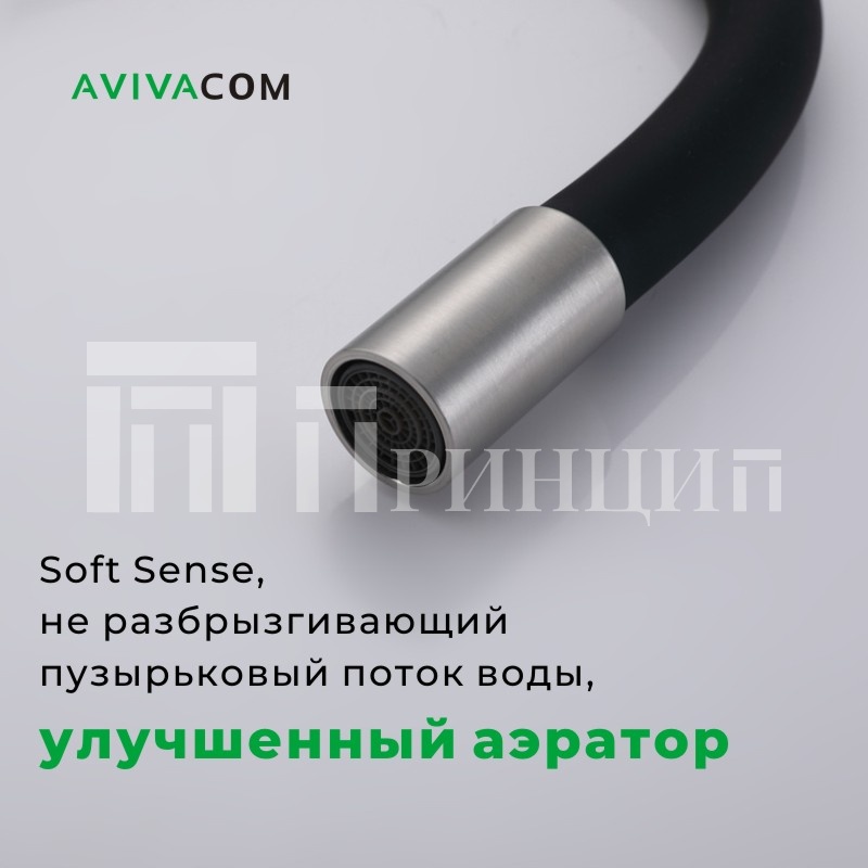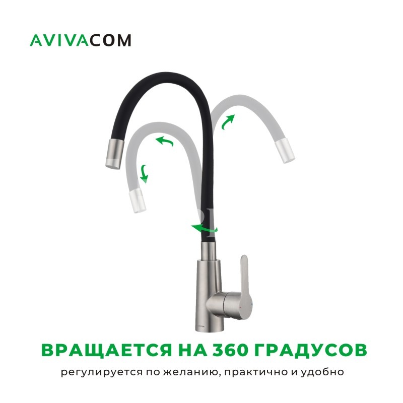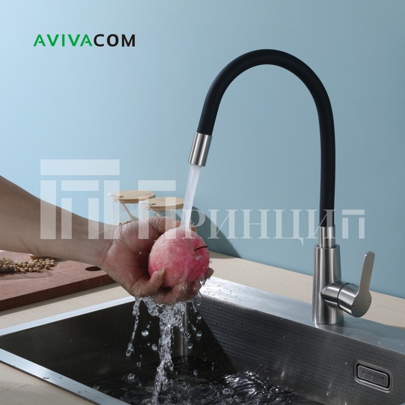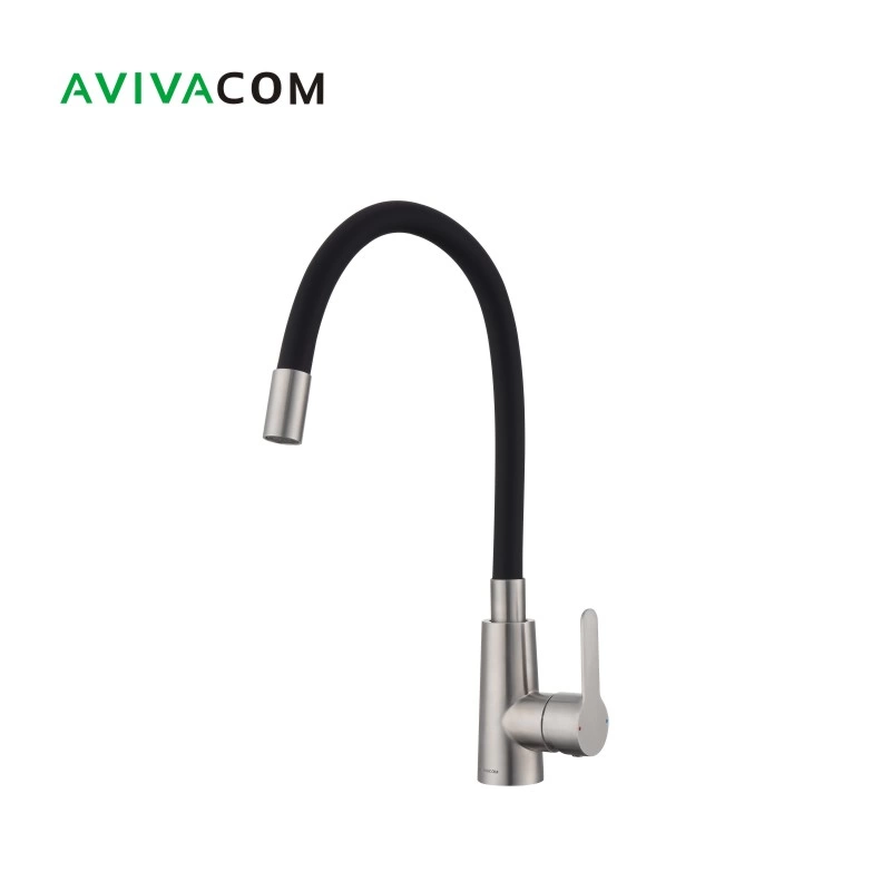 Смеситель AVIVACOM Сатин с черным упругим изливом