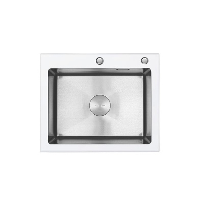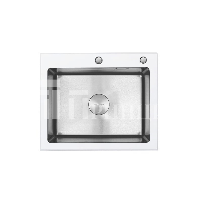 Стальная мойка AVIVACOM 6050 Нано-Сатин/Белое стекло АКЦИЯ